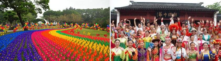 大型民族音乐舞蹈《东方霓裳》,数百套民族服饰精彩演绎五十六族别样风情。大型广场艺术晚会《龙凤舞中华》。16年积淀的艺术表演实力,凝聚数百位艺术家的奇思妙想,将声、光、电、水等现代舞台手段悉数用尽,让舞蹈、杂技、魔术等艺术手段共聚一堂。