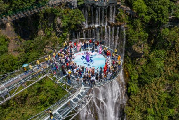 清远古龙峡玻璃桥吸引大量游客