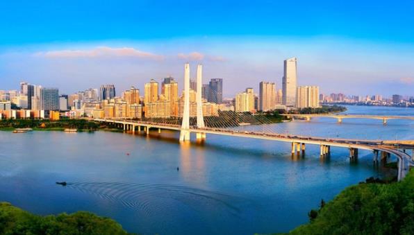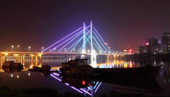 事实上,晴天惠州东江,景色更加美丽,天空湛蓝,只有天边的某些地方才有浮云,东江上的两座道路桥纵横交错,其中一座桥是钢索桥,密密麻麻,在太阳照耀下,就像建在东江上的巨大巨文古琴,河水也是绿色的,游艇在水面上迅速划过,留下长长的涟漪,东江两岸连绵不断的高楼,显得现代摩登,阳光中充满了明亮的色彩。