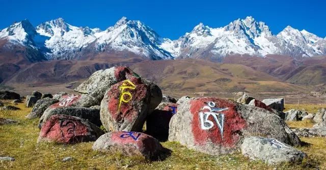 圣洁无比的六字真言玛尼石浑然天成,在岁月的摩挲中,那气魄与加持融入天地,那种庄严神秘,被谱写的淋漓尽致。