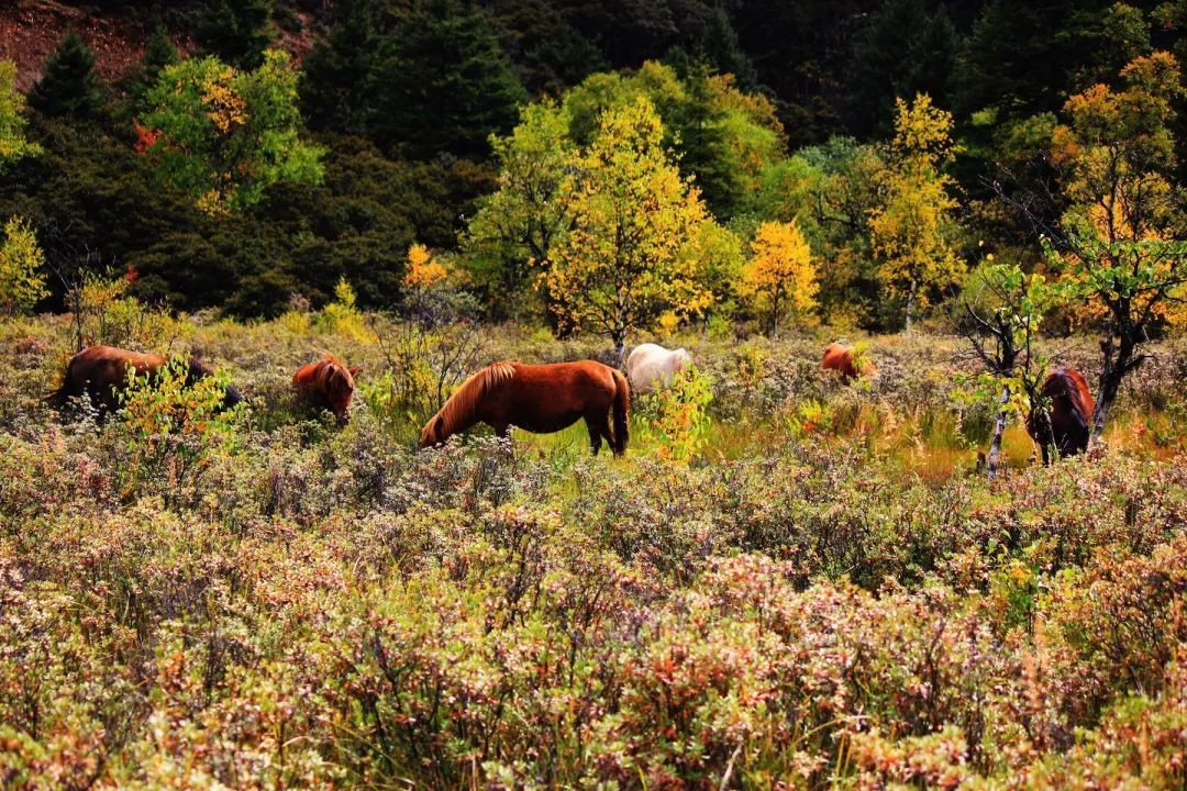 景区旁能看到许多玛尼石堆和溪边转经桶,不绝的人工装饰承载着藏族人民的信仰和寄托,细细品味这些身边的人文景观会发现,在它们在自然景观的衬托下显得格外多情。