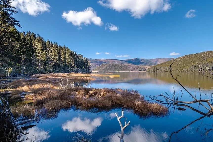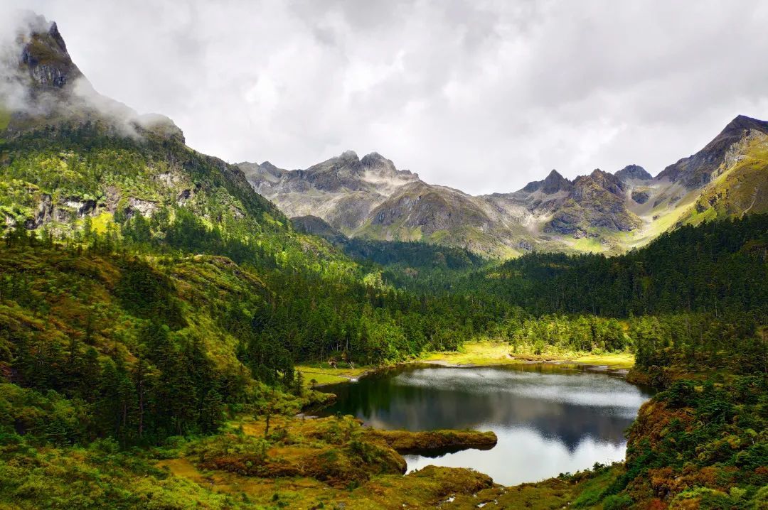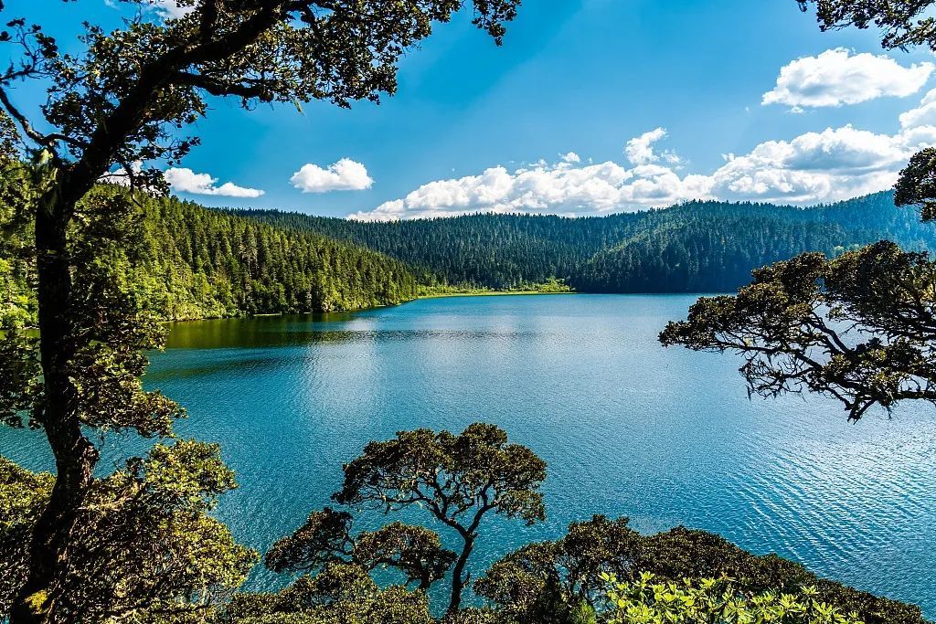 此地僻静无喧嚣,湖水明眼净心,湖中有一型如珍珠装点之曼陀罗的小岛耸立其间。沿着湖畔栈道漫步,轻松惬意。山上森林茂密,树种繁多,堪称“普达胜境”。此外,还有多处断层崖、林间小涧、深沟峡谷等独特小景交错分布,原始生态环境保存十分完好。